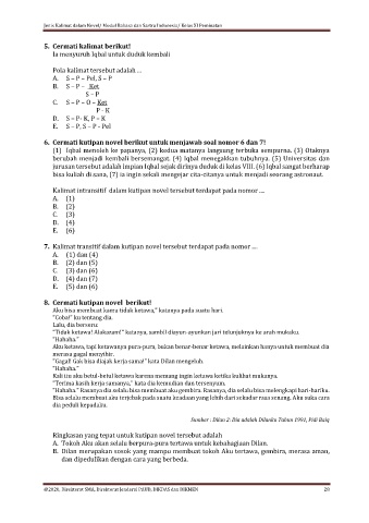 7. Kalimat transitif dalam kutipan novel tersebut terdapat pada nomor ....