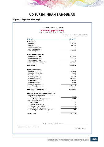 UD TUREN INDAH BANGUNAN Tugas 1, laporan laba rugi E-MODUL KOMPUTER AKUNTANSI ACCURATE ONLINE 343