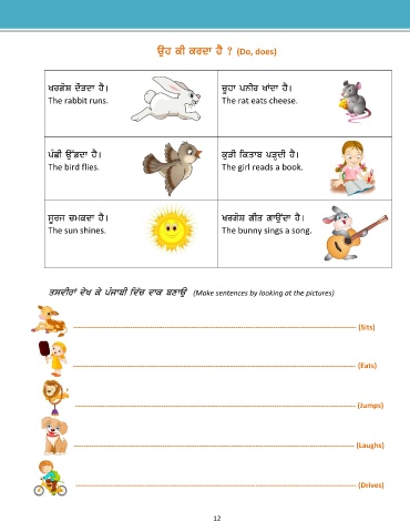 qsvIrW vyK ky pMjwbI iv`c vwk bxwau (Make sentences by looking at the pictures)
