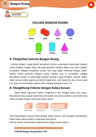 Volume bangun ruang adalah banyaknya takaran yang dapat menempati bangun