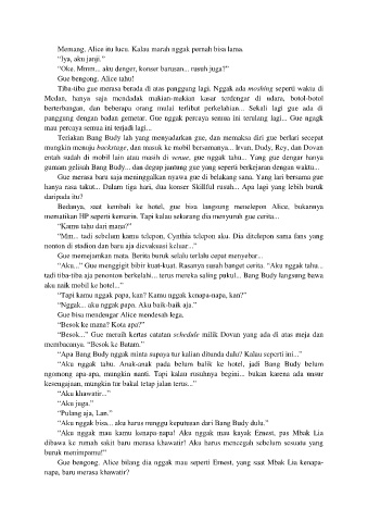Bedanya, saat kembali ke hotel, gue bisa langsung menelepon Alice, bukannya