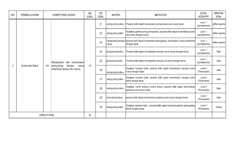 21 Jaring-jaring kubus Peserta didik dapat menentukan jaring-jaring kubus yang benar. pilihan ganda