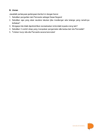 1. Sebutkan pengertian dari Pancasila sebagai Dasar Negara!