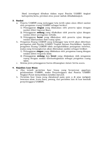 a. Peserta UAMBN yang melanggar tata tertib ujian akan diberi sanksi