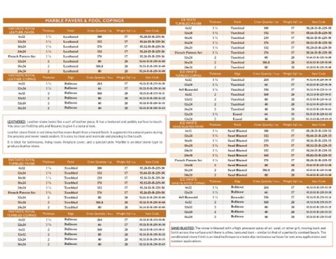 LEATHER PAVER Thickness Finish Crate Quantity / Sqf Weight Sqf / Lbs Item Code 12x24 1 ¼ Tumbled 132 17 SL66-D-B-229-30
