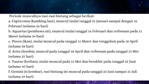 Periode munculnya rasi-rasi bintang sebagai berikut: