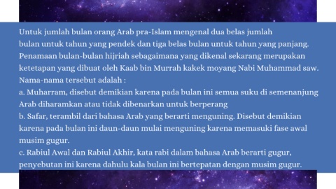 Untuk jumlah bulan orang Arab pra-Islam mengenal dua belas jumlah