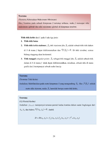 2. Titik-titik kritis stationer, p titik stasioner jika p adalah sebuah titik-titik dalam