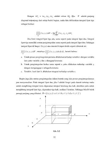diagonal terpanjang dari setiap balok bagian, maka kita definisikan integral lipat tiga
