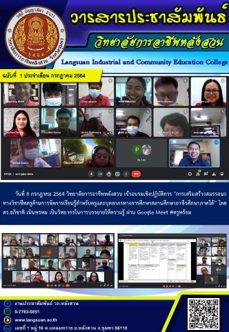 วันที่ 8 กรกฎาคม 2564 วิทยาลัยการอาชีพหลังสวน เข้าอบรมเชิงปฏิบัติการ "การเสริมสร้างสมรรถนะ