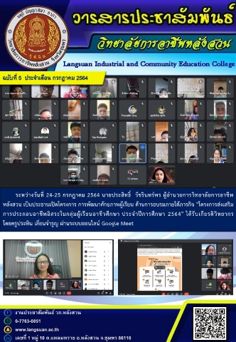 ระหว่างวันท 24-25 กรกฎาคม 2564 นายประสิทธิ์ วัชรินทร์พร ผู้อานวยการวิทยาลัยการอาชพ