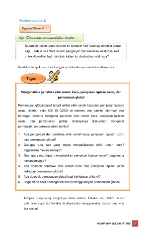 ozon, dan pemanasan global. Selanjutnya diskusikan mengenai
