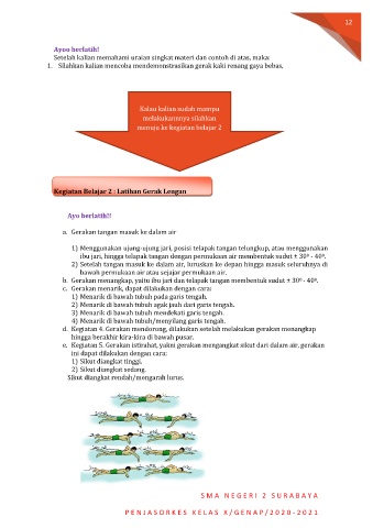 e. Kegiatan 5. Gerakan istirahat, yakni gerakan mengangkat sikut dari dalam air, gerakan