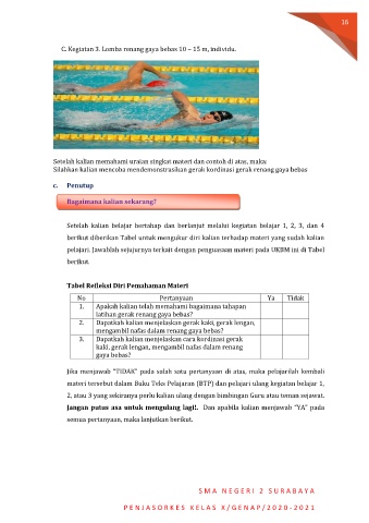 C. Kegiatan 3. Lomba renang gaya bebas 10 – 15 m, individu.