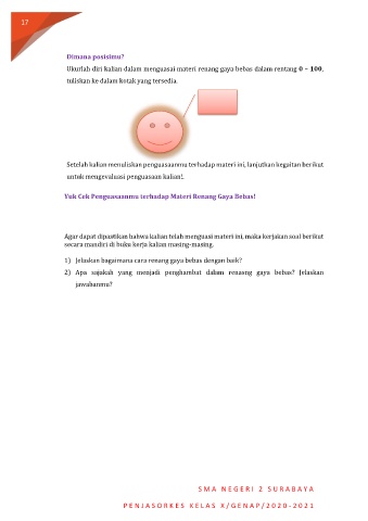 Ukurlah diri kalian dalam menguasai materi renang gaya bebas dalam rentang 0 – 100,
