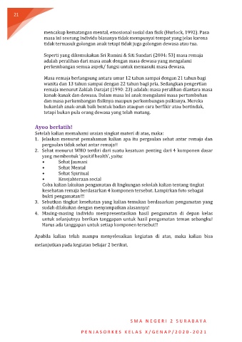 kesehatan remaja berdasarkan 4 komponen tersebut. Lampirkan foto sebagai