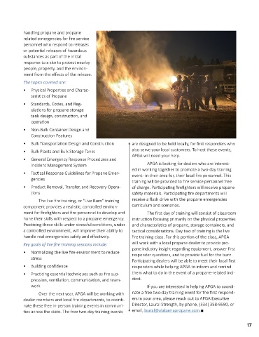 Key goals of live fire training sessions include: will work with a local propane dealer to provide pro-