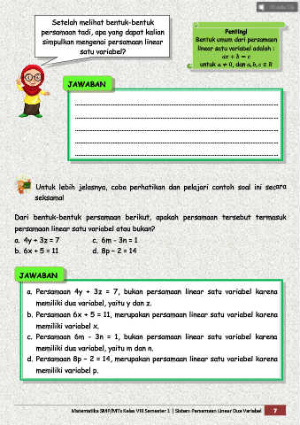 Matematika SMP/MTs Kelas VIII Semester 1 | Sistem Persamaan Linear Dua Variabel 7