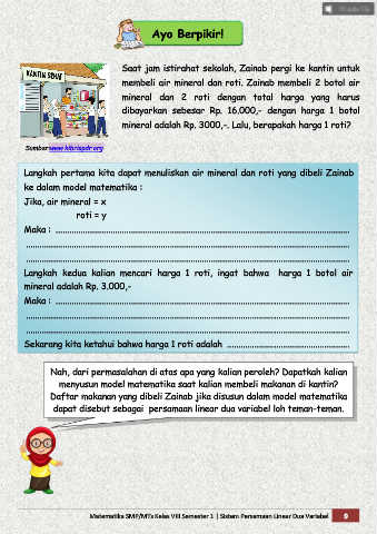 Matematika SMP/MTs Kelas VIII Semester 1 | Sistem Persamaan Linear Dua Variabel   9