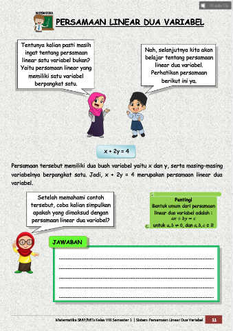 Matematika SMP/MTs Kelas VIII Semester 1 | Sistem Persamaan Linear Dua Variabel 11