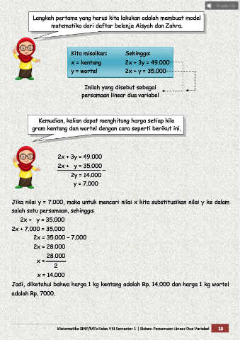 Matematika SMP/MTs Kelas VIII Semester 1 | Sistem Persamaan Linear Dua Variabel 13