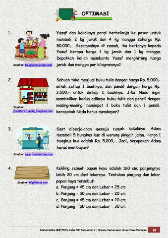 Matematika SMP/MTs Kelas VIII Semester 1 | Sistem Persamaan Linear Dua Variabel 16
