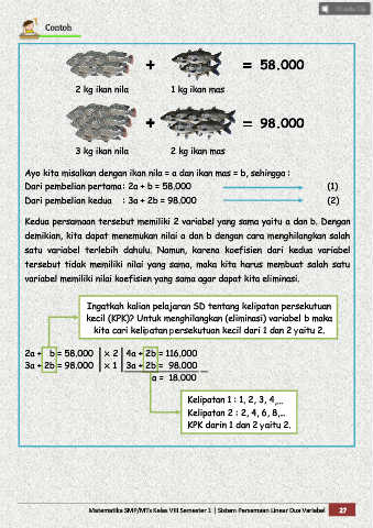Matematika SMP/MTs Kelas VIII Semester 1 | Sistem Persamaan Linear Dua Variabel 27