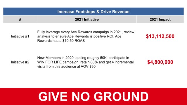 Initiative #1 analysis to ensure Ace Rewards is positive ROI. Ace $13,112,500
