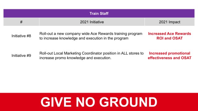 Roll-out a new company wide Ace Rewards training program Increased Ace Rewards