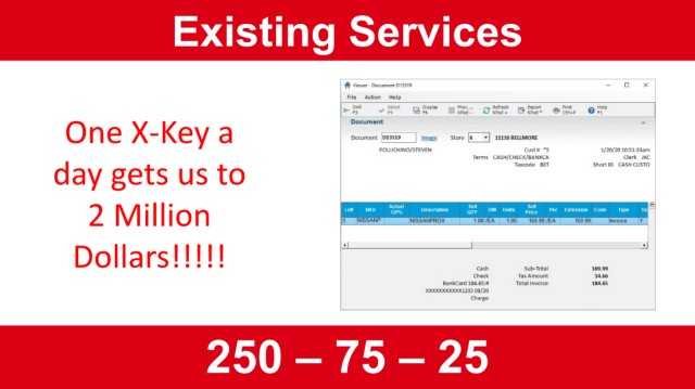 Existing Services One X-Key a day gets us to 2 Million Dollars!!!!! 250 – 75 – 25