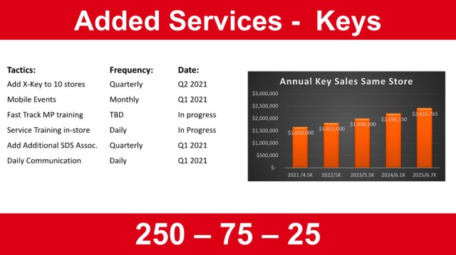 Add X-Key to 10 stores Quarterly Q2 2021 Annual Key Sales Same Store
