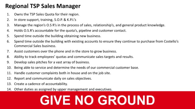 3. Manage the region’s O.S R’s in the process of sales, relationship’s, and general product knowledge.