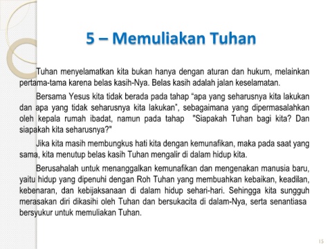 kebenaran, dan kebijaksanaan di dalam hidup sehari-hari. Sehingga kita sungguh