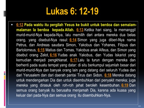 6:12 Pada waktu itu pergilah Yesus ke bukit untuk berdoa dan semalam-