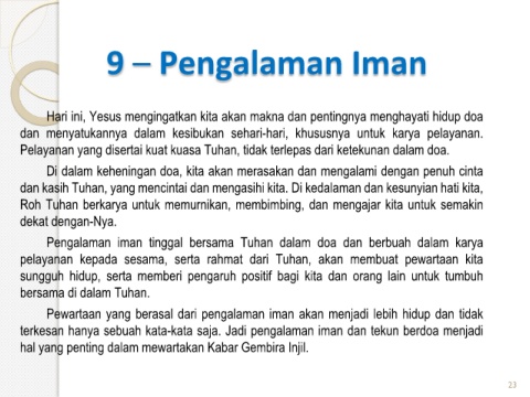terkesan hanya sebuah kata-kata saja. Jadi pengalaman iman dan tekun berdoa menjadi