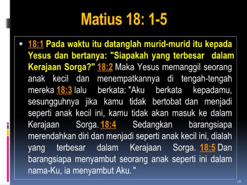 yang terbesar dalam Kerajaan Sorga. 18:5 Dan
