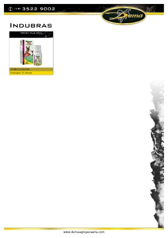 (18) 3522 9002 Indubras Vermex Plus 20ml VERMIF./CAES/ORAL Embalagem: 25 unidades www.domaagropecuaria.com
