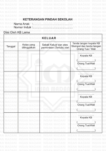 Kelas yang Sebab Keluar dan atas Tanda tangan kepala KB