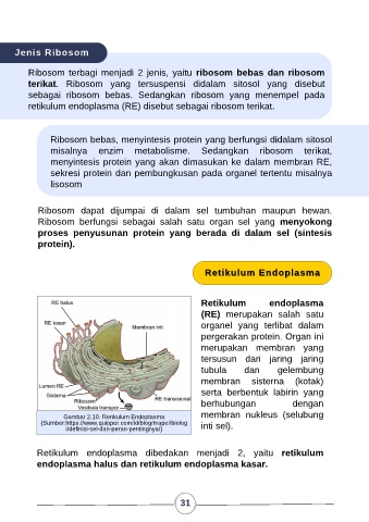 Ribosom terbagi menjadi 2 jenis, yaitu ribosom bebas dan ribosom