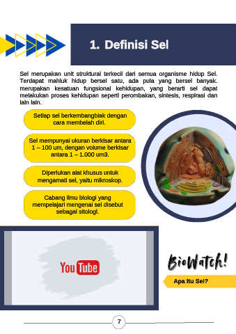 Sel merupakan unit struktural terkecil dari semua organisme hidup Sel.