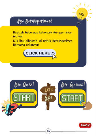 Ayo Bereksperimen! Ayo Bereksperimen! Buatlah beberapa kelompok dengan rekan mu ya! Klik link dibawah ini untuk bereksperimen bersama rekanmu! Bio Quiz! Bio Games! Bio Games! Bio Quiz! 15