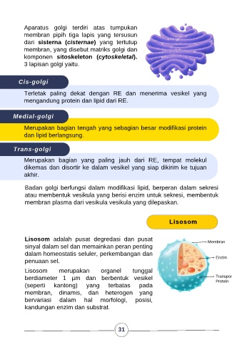 Badan golgi berfungsi dalam modifikasi lipid, berperan dalam sekresi