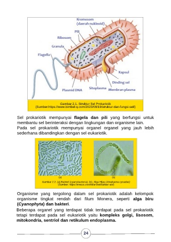 Beberapa organel yang terdapat tidak terdapat pada sel prokariotik