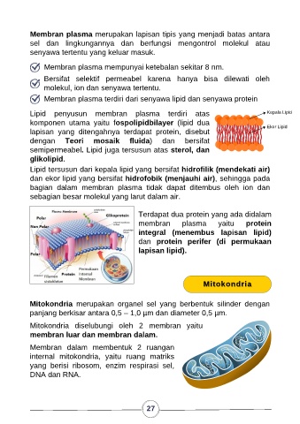 Membran plasma terdiri dari senyawa lipid dan senyawa protein