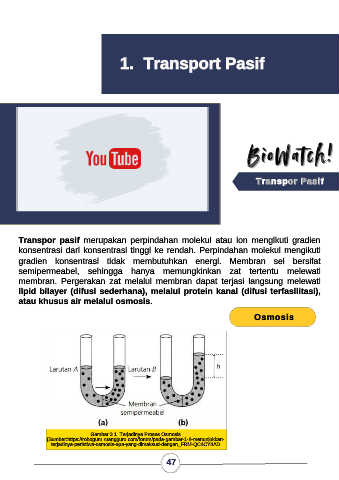 Transpor pasif merupakan perpindahan molekul atau ion mengikuti gradien