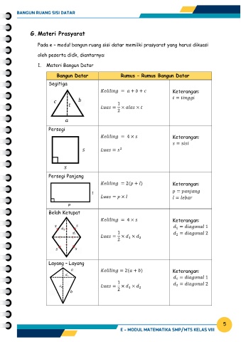 Pada e – modul bangun ruang sisi datar memilki prasyarat yang harus dikuasi