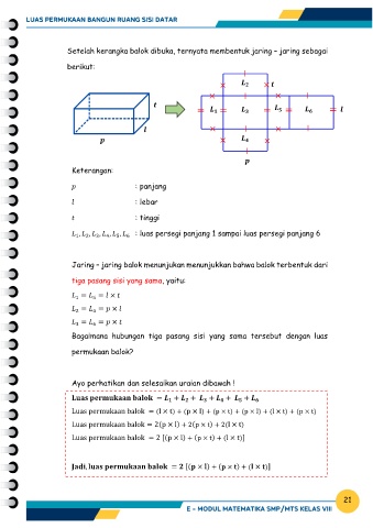 Luas permukaan balok = (l × t) + (p × l) + (p × t) + (p × l) + (l × t) + (p × t)