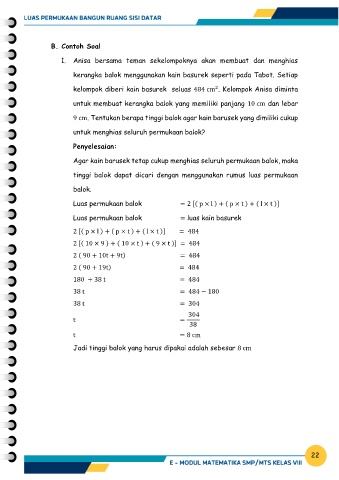 9 cm. Tentukan berapa tinggi balok agar kain barusek yang dimiliki cukup