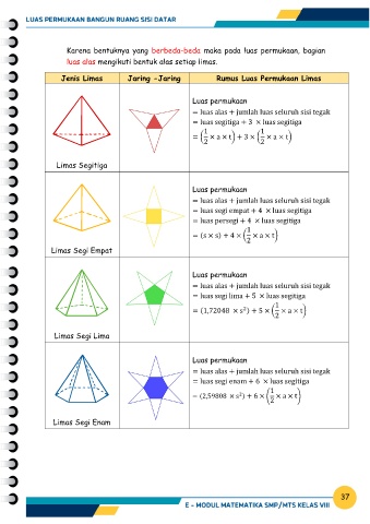Karena bentuknya yang berbeda-beda maka pada luas permukaan, bagian
