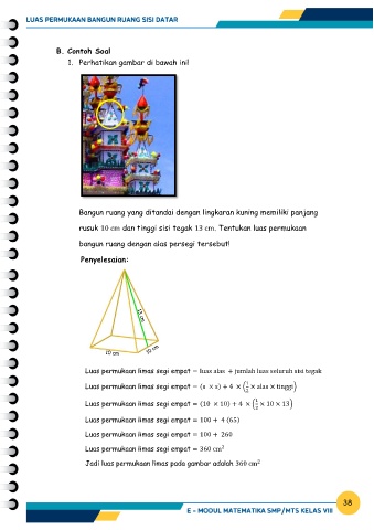 Luas permukaan limas segi empat = (10 × 10) + 4 × ( × 10 × 13)